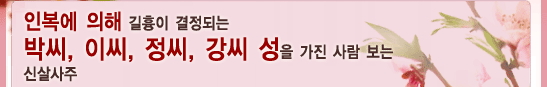 Àο¬¿¡ ÀÇÇØ ±æÈäÀÌ µå´Â ¹Ú¾¾,À̾¾,Á¤¾¾,°­¾¾ ¼ºÀ» °¡Áø »ç¶÷ º¸´Â ½Å»ì»çÁÖ